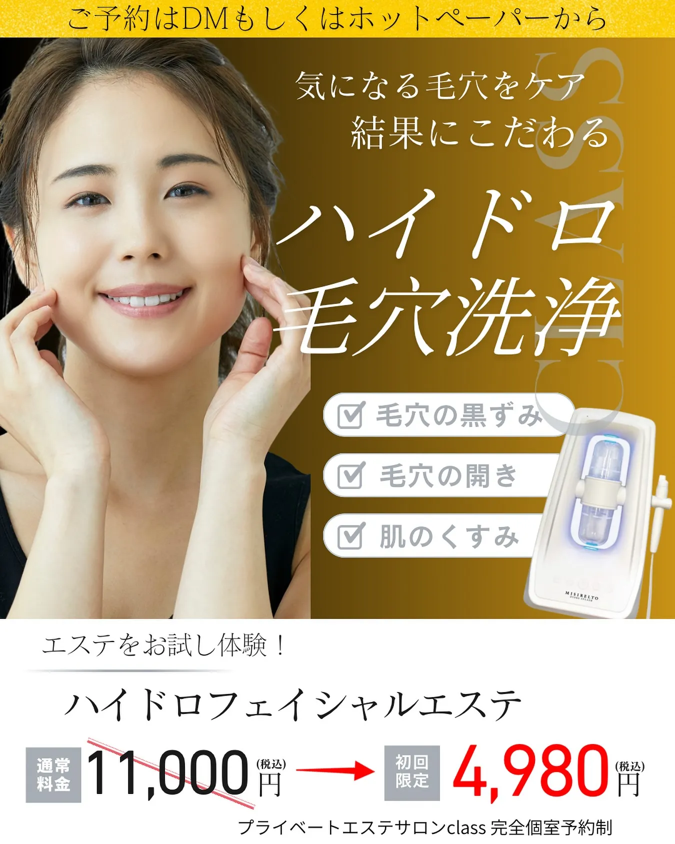 当店でもかなり大人気のハイドロ毛穴洗浄+フェイシャルエステを皆さんに是非ご体験いただきたく、今回お試し価格でのご案内です🥰